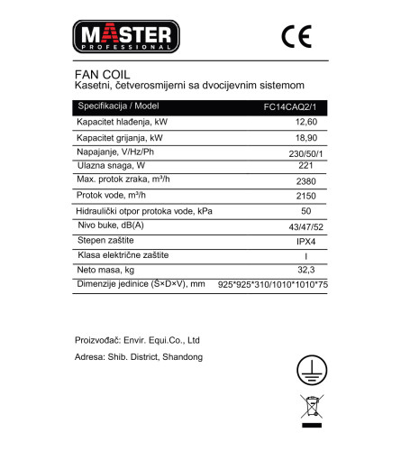 Fan coil za grijanje i hlađenje plafonski FC14CAQ2/1