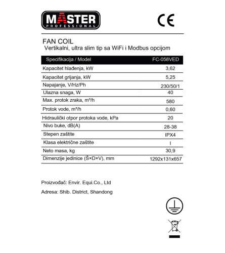 Fan coil za grijanje i hlađenje SLIM FC-059VED WiFi/MODBUS