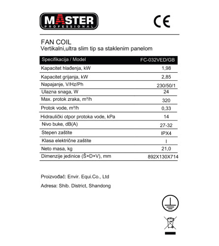 Fan coil za grijanje i hlađenje stakleni FC-032VED/GB WiFi/MODBUS