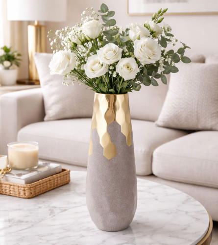 Tip proizvoda: Vazna; Tip: Keramička; Boja: Zlatna; Model: 755847; Dimenzije: 12 x 36 cm;